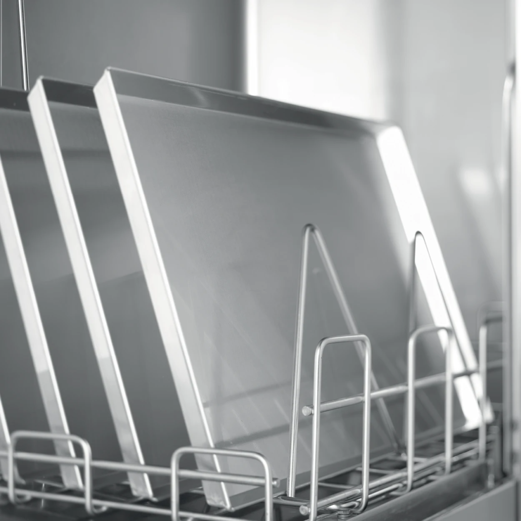 Dvostruko izolovana vrata su montirana na kućište sa dve čvrste šarke. Zadnji zid je napravljen od obloženog čelika, pružajući pouzdanu zaštitu od ulaska prljavštine ili ostataka hrane u mašinu.