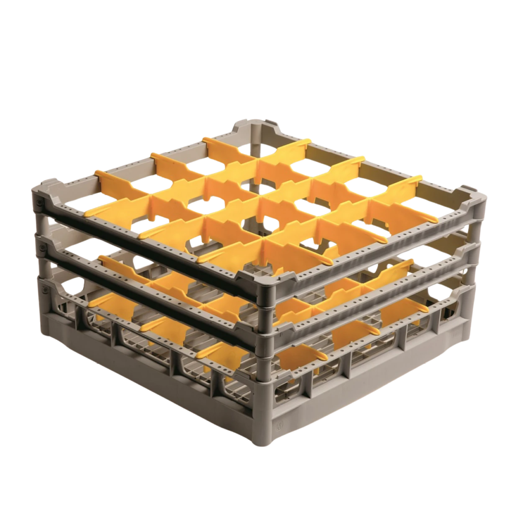 Ovaj plastični stalak dimenzija 500 × 500 mm pruža maksimalnu stabilnost i zaštitu za čaše tokom pranja.