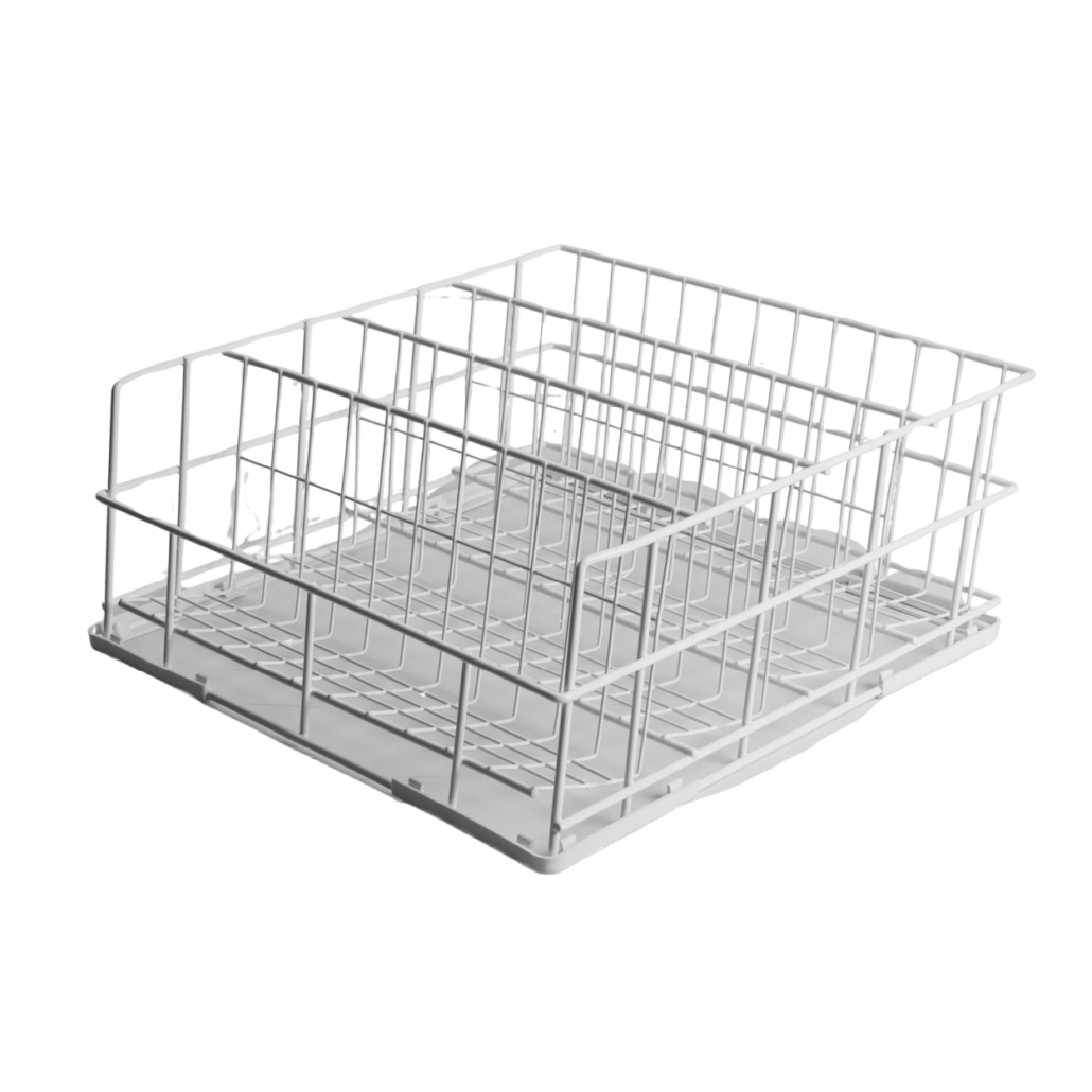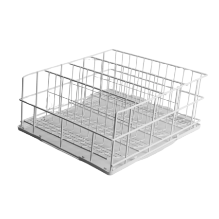 Svaki odeljak ovog 4-delnog rafa namenjen je za čaše prečnika do 85 mm. Zahvaljujući zakošenom dnu, nosač omogućava još efikasnije rezultate pranja i sušenja.