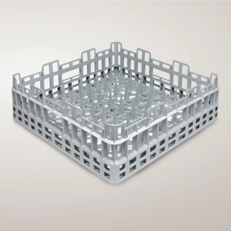 Plastični stalak za tanjire sa spoljašnjim dimenzijama 500 x 500 x 155 mm (Š × D × V) pruža sigurno i praktično rešenje za pranje i odlaganje tanjira.