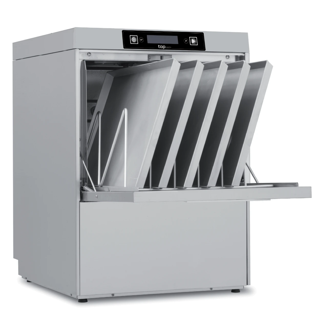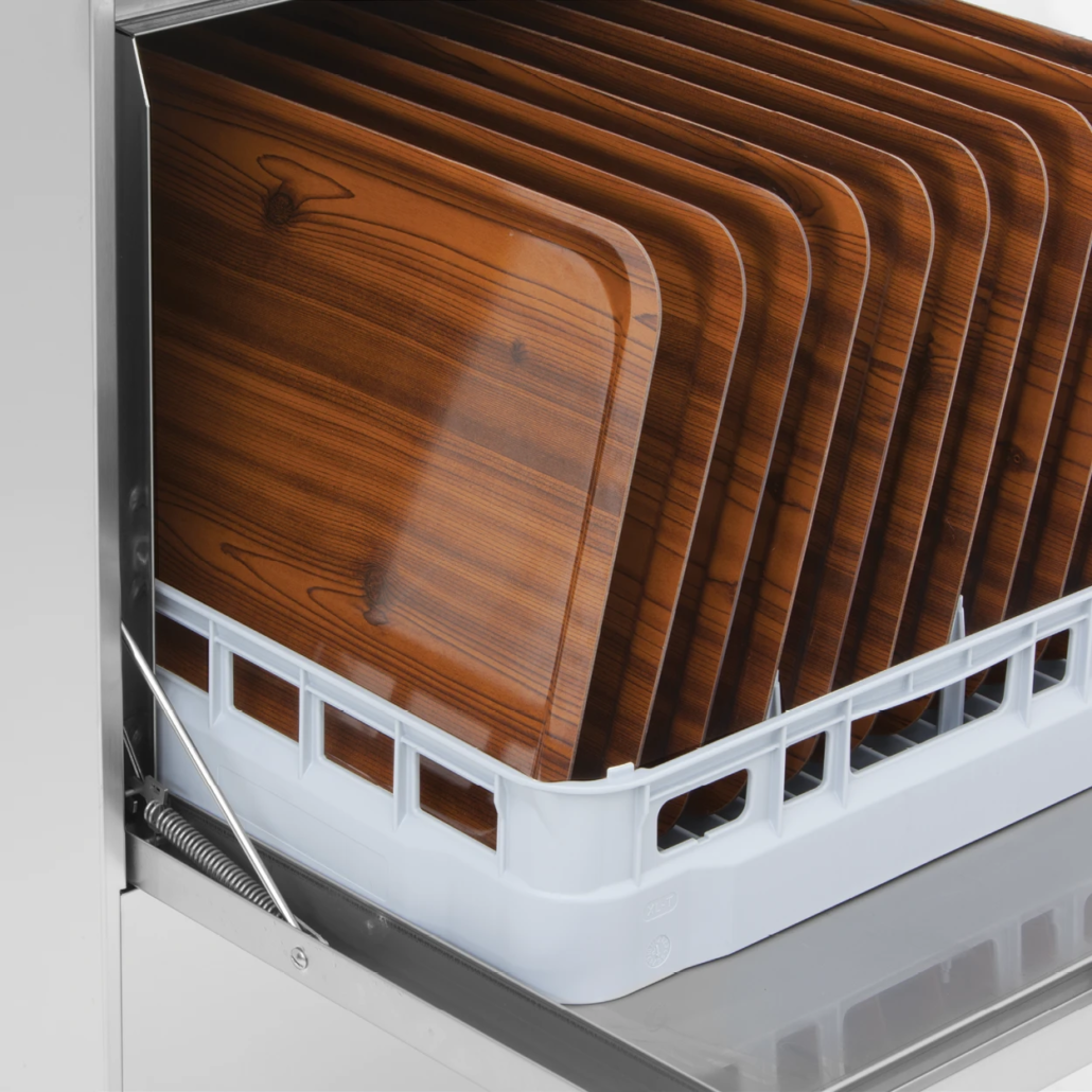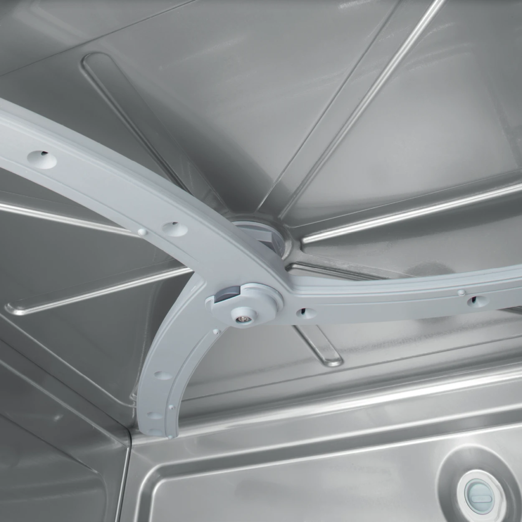 Unutrašnjost je izrađena tehnikom dubokog izvlačenja, sa integrisanim nosačima za rešetke u bočnim zidovima. Potpuno je bez cevi i oštrih ivica, što obezbeđuje besprekornu higijenu u celoj komori za pranje.