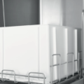 Vrata su dvoslojna i u potpunosti izolovana. Povezana su sa kućištem preko dve čvrste šarke. Zadnji zid, napravljen od obloženog čelika, pruža efikasnu zaštitu od ulaska spoljašnje prljavštine ili ostataka hrane u mašinu.