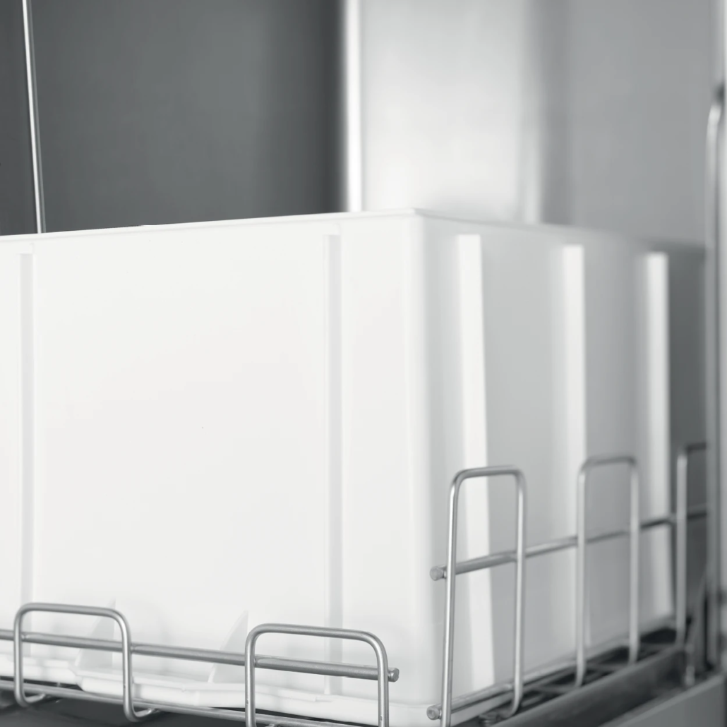 Toptech 32-23D.6 NRG ima kućište od nerđajućeg čelika sa dvostrukim zidovima (CrNi 18/10), izolovano sa vazdušnim razmakom od 10 mm između komore za pranje i spoljašnjeg zida – efikasno smanjujući buku i gubitak toplote.