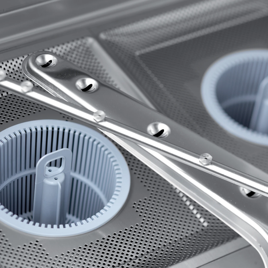 Rezervoar za pranje je potpuno pokriven iznad mesta za sredstvo za pranje površinskim filterom od nerđajućeg čelika, dok dva dodatna filtera ispred ulaza pumpe obezbeđuju kontinuirani tretman vode i pouzdanu zaštitu unutrašnjih komponenti.