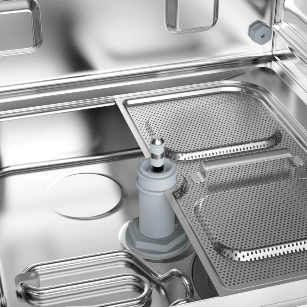 Unutrašnjost mašine je izrađena tehnikom dubokog izvlačenja, sa integrisanim nosačima rešetki u bočnim zidovima. Unutrašnjost je bez cevi i oštrih ivica, što obezbeđuje besprekornu higijenu u celosti.
