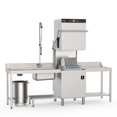 Besprekorno integrisani nosač korpe od nerđajućeg čelika obezbeđuje glatko kretanje korpe i podržava higijensko, efikasno pranje posuđa i lako održavanje mašine . Rezervoar za pranje je potpuno pokriven iznad mesta gde se stavlja sredstvo za pranje dvodelnim površinskim filterom od nerđajućeg čelika. Dva dodatna filtera postavljena ispred ulaza pumpe obezbeđuju kontinuiranu filtraciju vode i efikasno štite unutrašnje komponente. Zadnji zid je takođe napravljen od nerđajućeg čelika, pružajući pouzdanu zaštitu od spoljašnjih zagađivača.