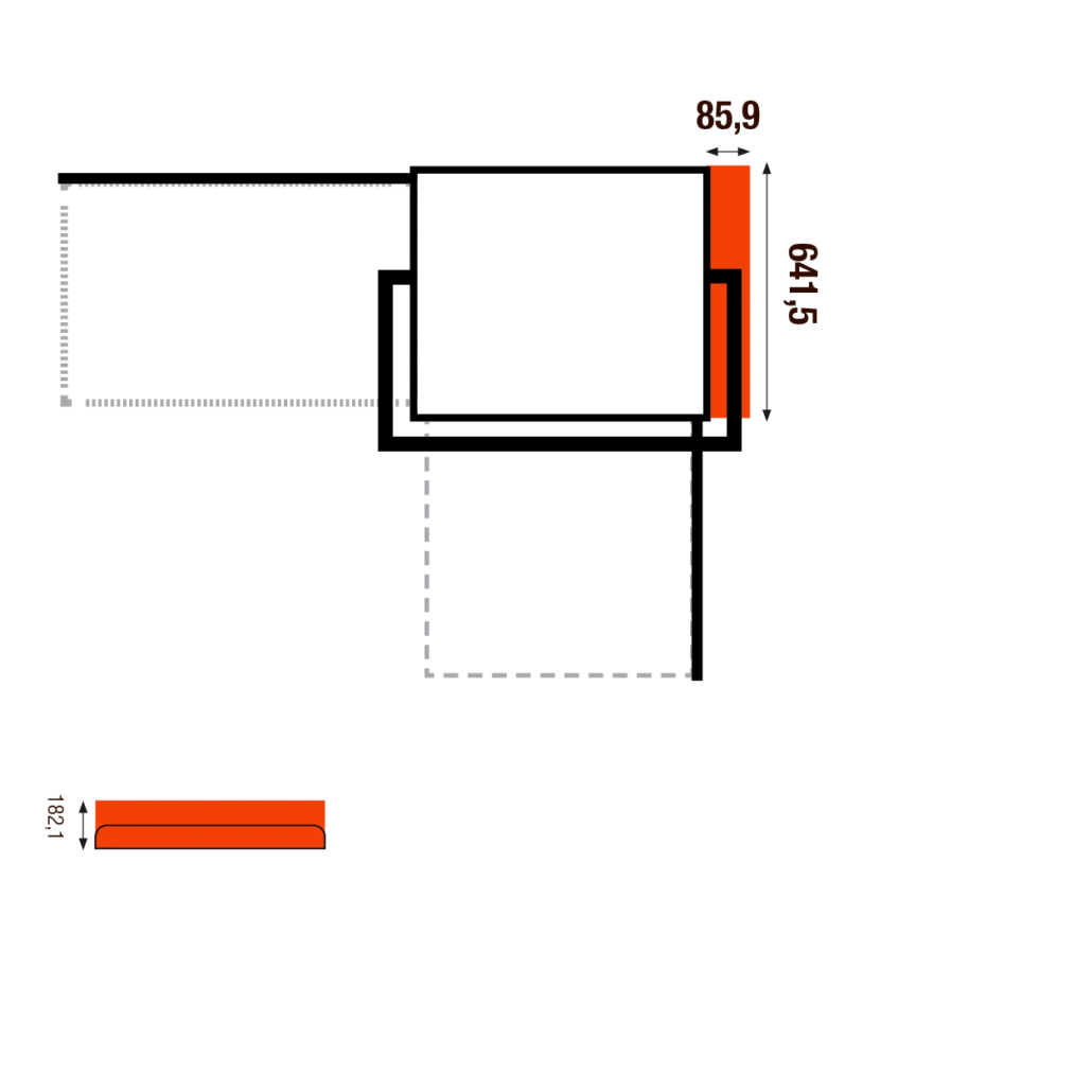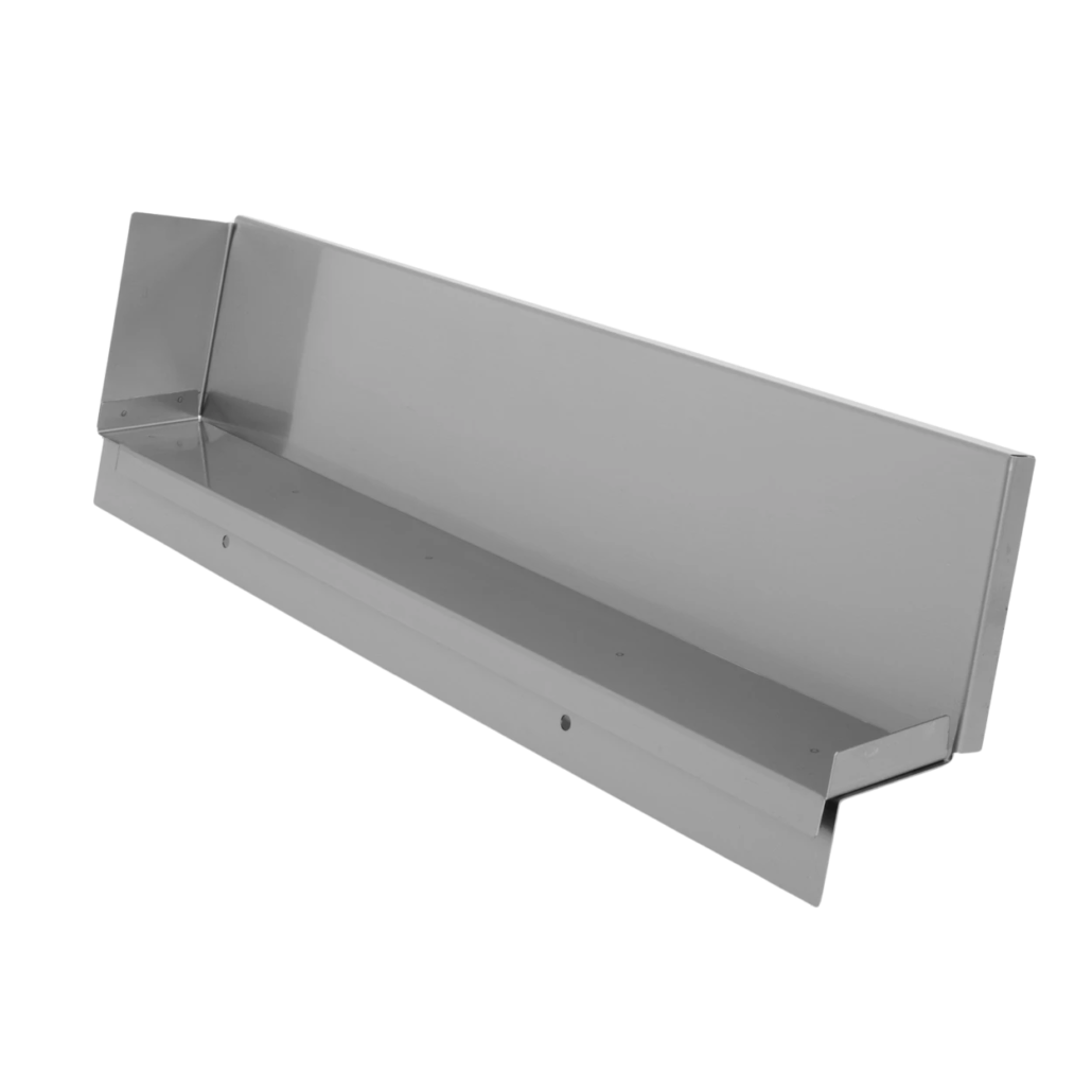 Ugaona završna ploča je u potpunosti napravljena od nerđajućeg čelika (CrNi 18/10) i isporučuje se u dimenzijama (Š x D x V): 64,2 × 8,6 × 18,2 cm.