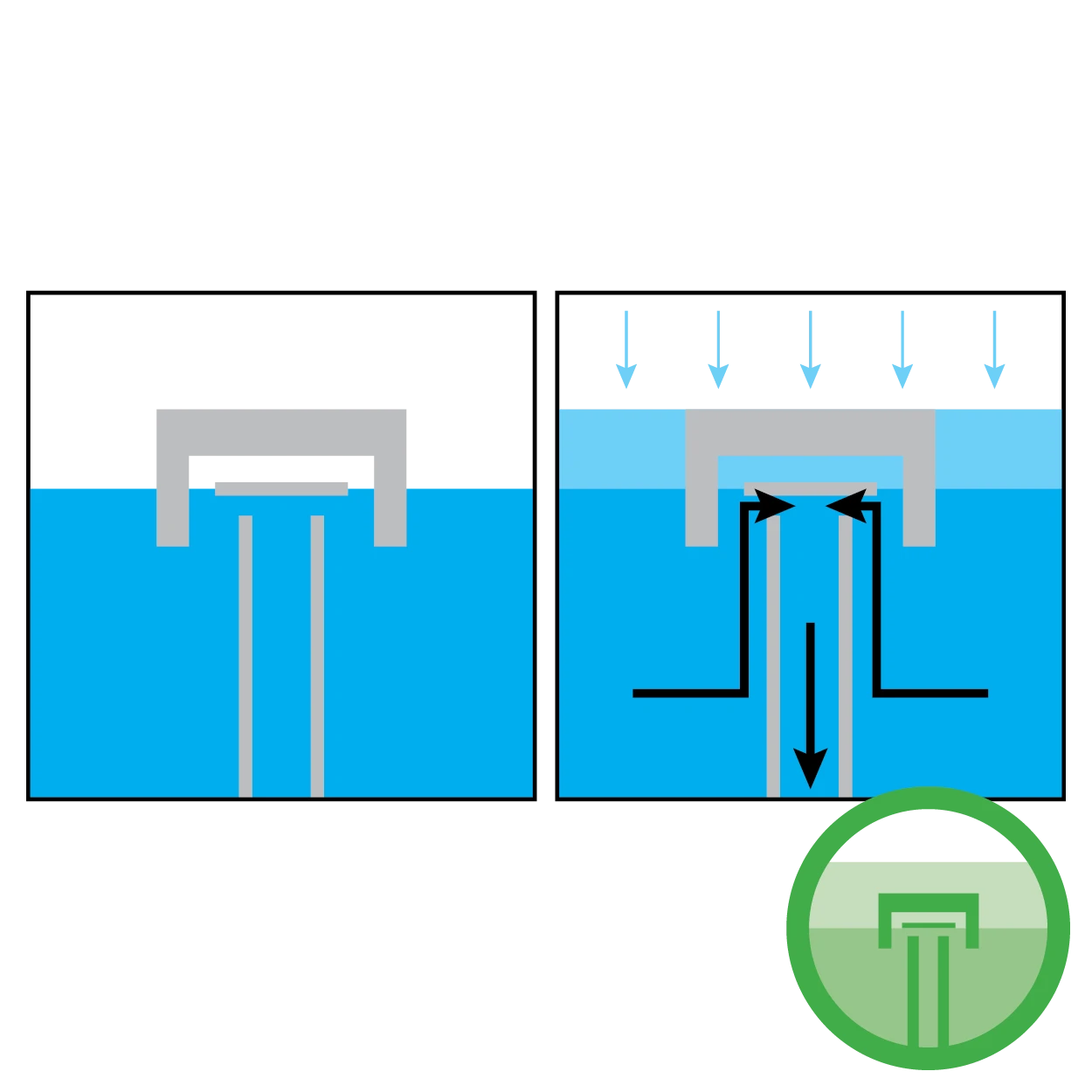 Arhimed (sistem za odvodnjavanje)Koristeći princip spojenih sudova, on stalno osvežava vodu u rezervoaru zamenom najprljavijeg dela čistom vodom — smanjujući upotrebu deterdženta do 10%.