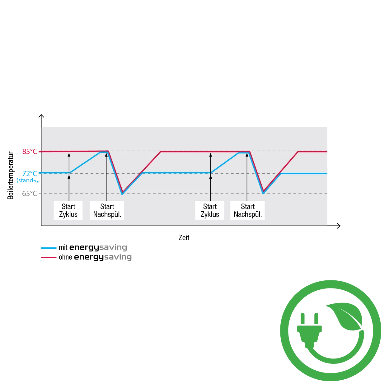 EnergySaving (Sistem za optimizaciju energije)Funkcija EnergySaving snižava temperaturu bojlera tokom režima pripravnosti (standby režim) i zagreva vodu samo do potrebne temperature tokom samog ciklusa pranja.Ovo smanjuje potrošnju energije, sprečava stvaranje kamenca i obezbeđuje efikasne performanse pranja.